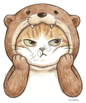 かわうその着ぐるみを着せられたものの、本人は全く納得していません。 頬杖をついて、「プン!」と怒っています。 目つきからは「解せぬ」という心の声が聞こえてきそうです。